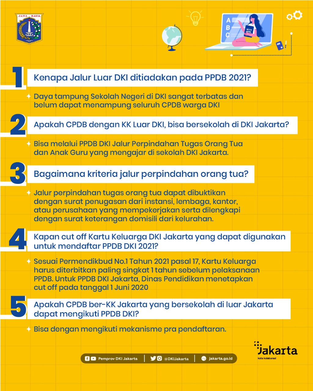 Pemprov dki jakarta mulai membuka pendaftaran penerimaan peserta didik baru (ppdb) 2021/2022 untuk semua jenjang mulai dari sd hingga sma .